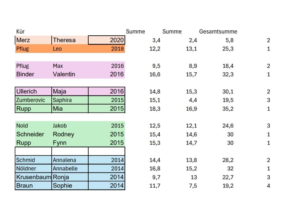 | Jahrgangsbestenwettkämpfe | 23. November 2024 | Muggensturm | Siegerliste Gymnastik |